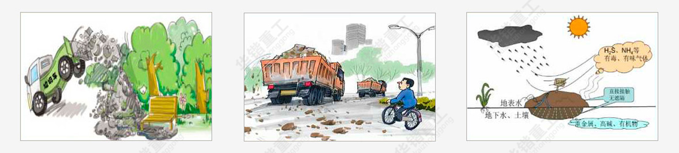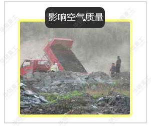 大多數(shù)城市建筑垃圾堆放地的選址在很大程度上具有隨意性,留下不少安全隱患。在外界因素的影響下,堆出現(xiàn)崩塌,阻礙道路甚至沖向其他建筑物的現(xiàn)象時(shí)有發(fā)生。 | 建筑垃圾在堆放和填埋過程中,由于發(fā)酵和雨水的淋溶、沖刷,以及地表水和地下水的浸泡而滲濾出的污水——滲濾液或淋濾液,造成周圍地表水和地下水的嚴(yán)重污染。 | 隨著城市的不斷發(fā)展,大量的建筑垃圾隨意堆放,不僅占用土地,而且污染環(huán)境,并且直接或間接的影響空氣質(zhì)量。 | 隨著城市建筑垃圾量的增加,垃圾堆放點(diǎn)也在增加,而垃圾堆放場的面積也在逐漸擴(kuò)大。 |