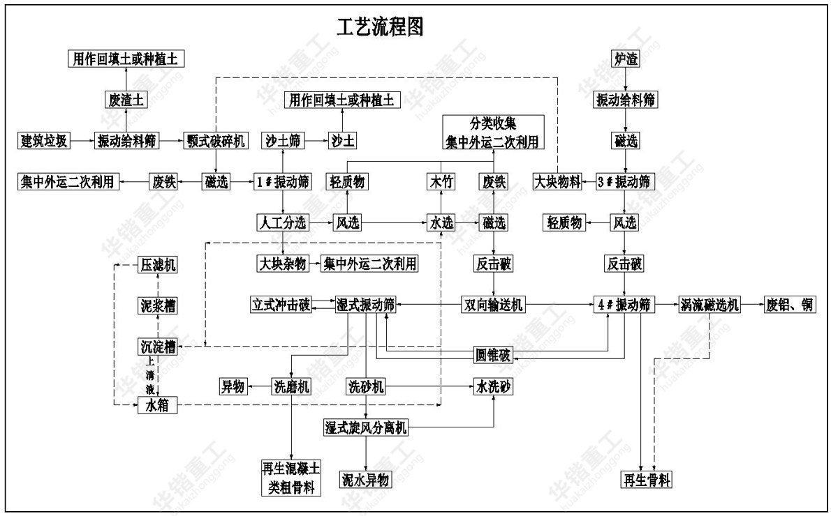 為積極響應(yīng)國家環(huán)保政策,改變建筑垃圾的處理現(xiàn)狀,提高資源再利用率,改善生態(tài)環(huán)境。我公司對(duì)建筑垃圾的處理方式進(jìn)行了深入研究,結(jié)合自身在破碎領(lǐng)域的技術(shù)支持,吸收國際先進(jìn)的建筑垃圾再生環(huán)保利用技術(shù),潛心研發(fā),現(xiàn)對(duì)建設(shè)垃圾資源化再利用提出兩種解決方案: